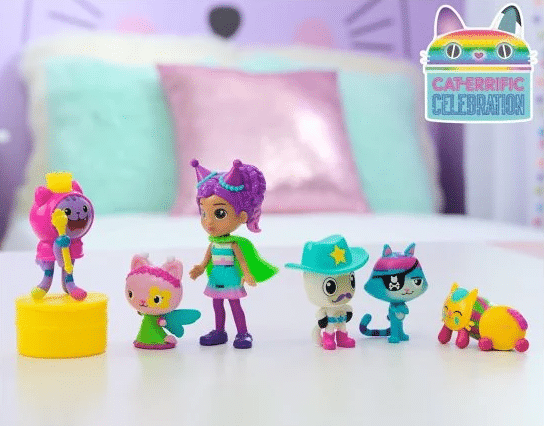 מתוך הסדרה האהובה מבית נטפליקס, סט מסיבה חגיגי הכולל 6 דמויות נאמנות למקור – גבי וחבריה החתוליים – כולם מוכנים להצטרף למסיבה המטורפת בבית הבובות של גבי.