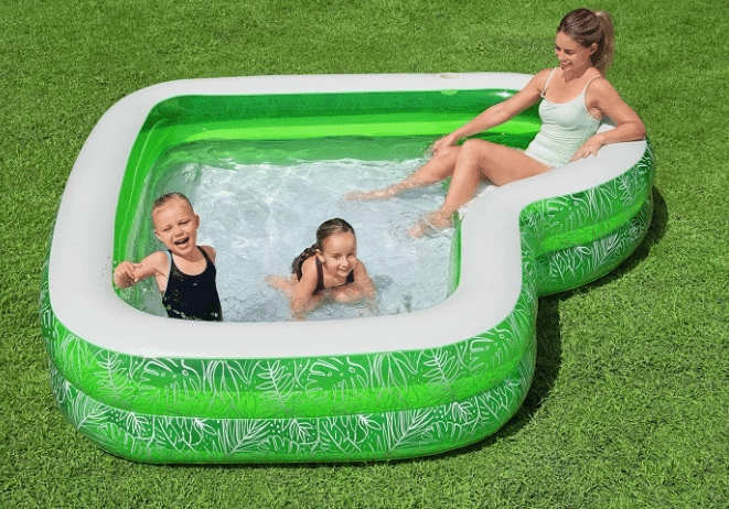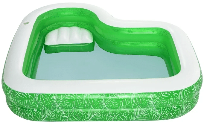 🌞 בריכה משפחתית מתנפחת – עיצוב גן עדן טרופי עם מושב מובנה 🌞