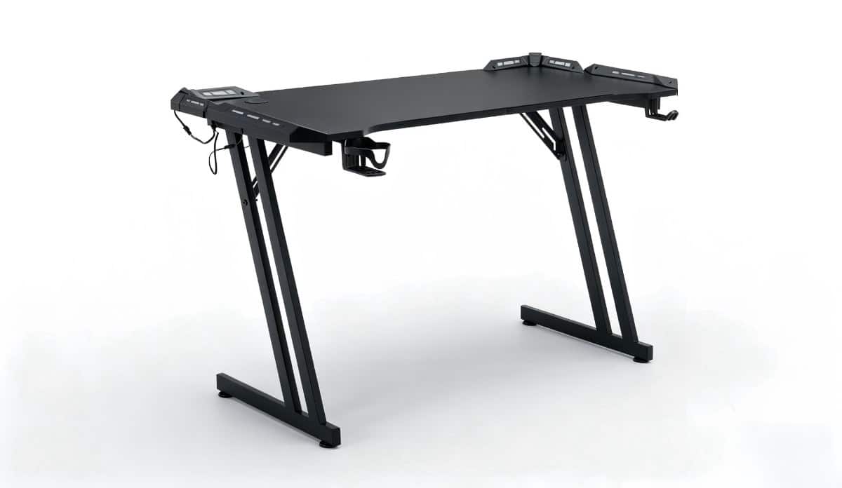 • סדר וארגון מעל הכל: השולחן מצויד במחזיק כוסות מובנה, וו ייעודי לאוזניות ושני פתחי USB לניהול כבלים וטעינה – כדי שהמשטח שלכם יישאר נקי ומאורגן.