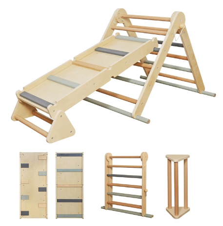 משולש פיקלר בגודל בינוני מאפשר לקטנטנים לטפס, לזחול, להתגלש ולחקור את גבולות היכולת – והכול בעיצוב בטיחותי, טבעי ומזמין.